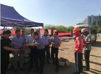 二〇一九年八月二日上午,黃山市屯溪區(qū)區(qū)委書記江善良率區(qū)四大班子及相關(guān)部門領(lǐng)導(dǎo)冒著酷暑,頂著驕陽,風(fēng)塵仆仆親赴黃山市建工集團(tuán)正在緊張施工中的黃山市重點工程項目八一大橋項目現(xiàn)場“送清涼”。