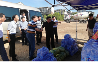 烈日下的八一大橋項目現(xiàn)場一片繁忙景象,工人們有的在支模、有的在焊接鋼筋、有的在澆筑砼,一切都井然有序,忙而不亂。屯溪區(qū)區(qū)委書記江善良一行一到現(xiàn)場,就將一件件防暑降溫慰問品遞到在施工的工人們手中,并囑咐在高溫下施工的操作人員要多注意休息、及時補充水分和營養(yǎng),按項目部要求合理安排工作時間,避免中午高溫時間段施工,同時要求項目部積極做好防暑降溫工作,保障施工一線工人的生命安全。充分體現(xiàn)了屯溪區(qū)委、區(qū)政府等領(lǐng)導(dǎo)對我集團(tuán)公司的一片深情厚誼和關(guān)懷。
