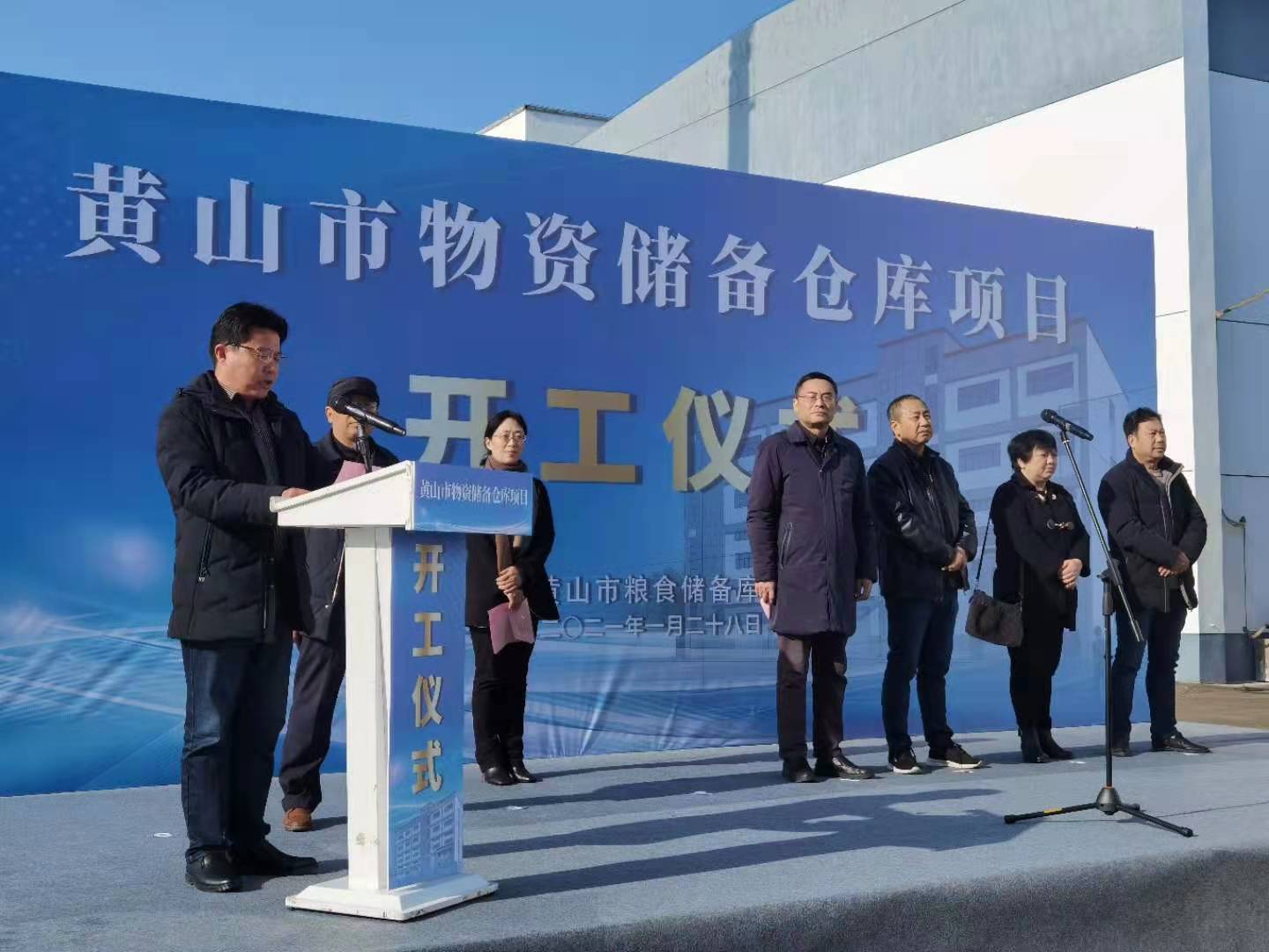 2021年1月28日上午9:30,黃山市物資儲備庫項目開工奠基活動在九龍工業(yè)園區(qū)項目地舉行,省糧食和物資儲備局物資和能源儲備處處長孫安慶、四級調研員何薇、市發(fā)展改革委(市糧食儲備局)主任(局長)丁士禮、建設單位主要負責人、黃山建工集團總經理葉金發(fā)等相關單位負責人參加了奠基儀式。