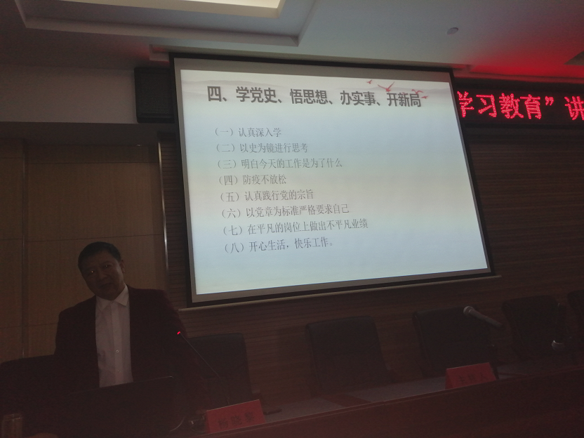 動(dòng)員結(jié)束后,緊接著由市委黨校楊曉黎教授為我們作了精彩的“黨史學(xué)習(xí)教育”專題報(bào)告。楊教授為我們解讀了中國共產(chǎn)黨由誕生、發(fā)展、壯大到建立新中國,以及帶領(lǐng)全國人民建設(shè)小康社會(huì)艱難而輝煌的革命歷程。同時(shí)楊教授也結(jié)合自己對(duì)黨史的研究體會(huì),以豐富的史實(shí)、鮮明的觀點(diǎn)、精辟的語言,向我們闡述了中國共產(chǎn)黨100年艱苦卓絕的風(fēng)雨歷程,總結(jié)出沒有共產(chǎn)黨就沒有新中國的偉大真理。報(bào)告深入淺出、內(nèi)容豐富,對(duì)我們加強(qiáng)黨的歷史和思想政治理論學(xué)習(xí),進(jìn)一步提高黨性修養(yǎng),具有很強(qiáng)的理論指導(dǎo)作用。報(bào)告很受教育,很受啟發(fā),收獲很大。會(huì)議最后,集團(tuán)總支副書記汪明星要求廣大黨員干部認(rèn)真學(xué)習(xí)領(lǐng)會(huì),掌握實(shí)質(zhì),以飽滿的工作熱情和扎實(shí)的工作作風(fēng),認(rèn)真履行職責(zé),努力工作,為公司的發(fā)展壯大貢獻(xiàn)力量。