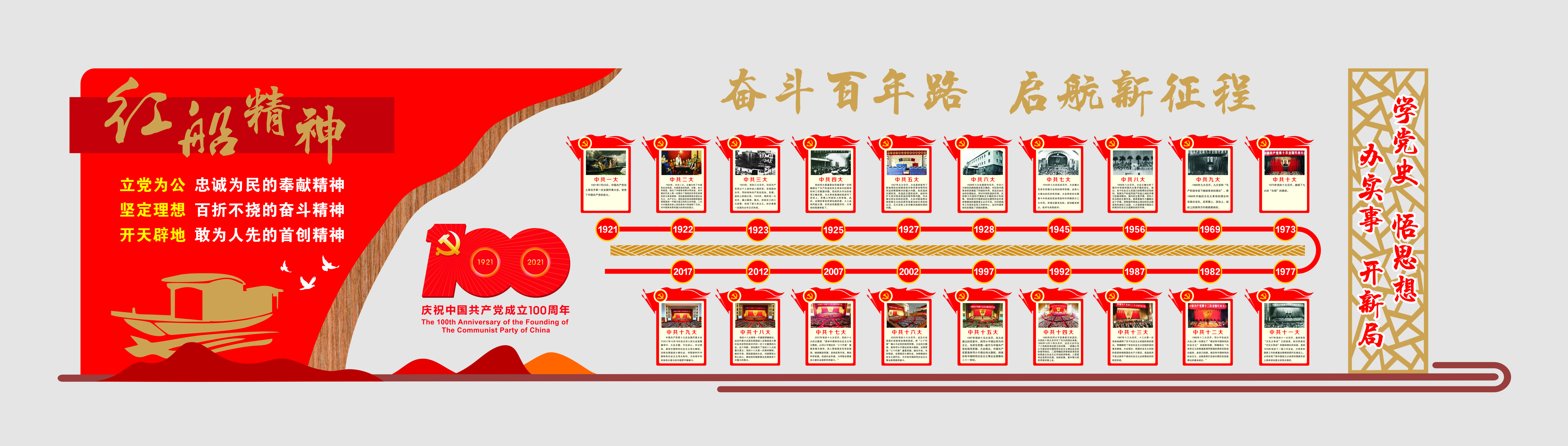 展板內(nèi)容主要是:1921年7月中國共產(chǎn)黨的成立到2021年7月黨的百年發(fā)展簡史等內(nèi)容。
