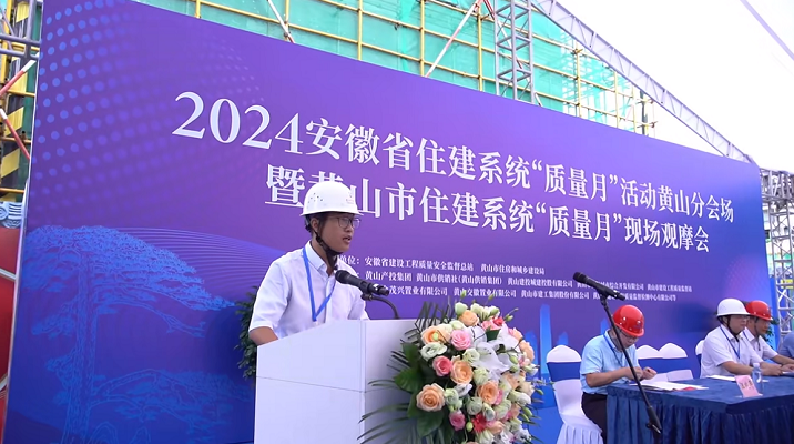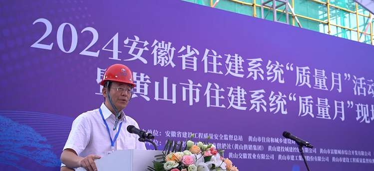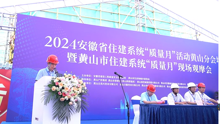 省質(zhì)量安全監(jiān)督總站站長黃欣鄭重宣布:2024安徽省住建系統(tǒng)“質(zhì)量月”活動黃山分會場暨黃山市住建系統(tǒng)“質(zhì)量月”現(xiàn)場觀摩會活動啟幕。