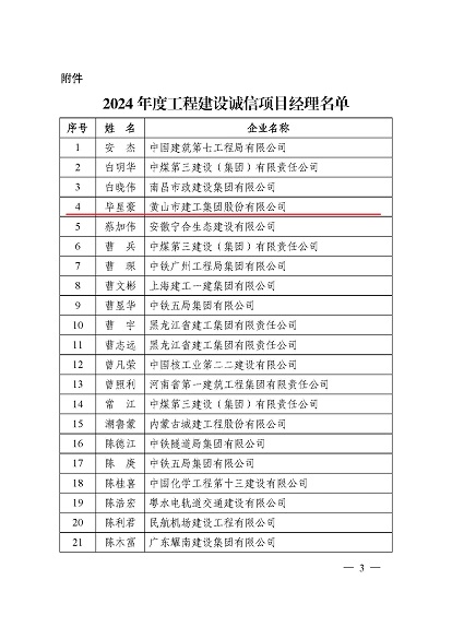 近日,中國施工企業(yè)管理協(xié)會公布了2024年度第一批工程建設(shè)企業(yè)信用等級評價結(jié)果的通知、工程建設(shè)誠信企業(yè)家評價結(jié)果、工程建設(shè)誠信項目經(jīng)理名單。黃山建工集團順利通過AAA級信用企業(yè)的年審,繼續(xù)保持AAA信用等級的殊榮。黃山建工集團總經(jīng)理葉金發(fā)獲評誠信企業(yè)家,項目經(jīng)理畢星豪獲評誠信項目經(jīng)理。此次榮譽是對黃山建工集團在工程建設(shè)領(lǐng)域的綜合實力和誠信經(jīng)營的高度認可。