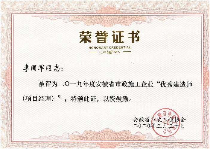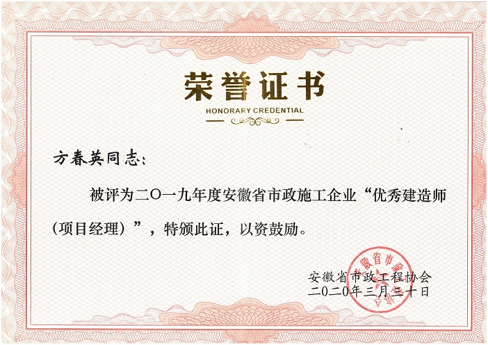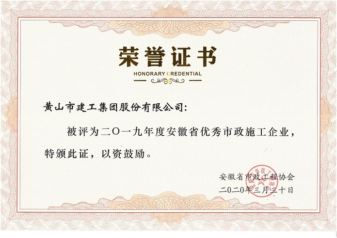 2019年度安徽省優(yōu)秀市政施工企業(yè)